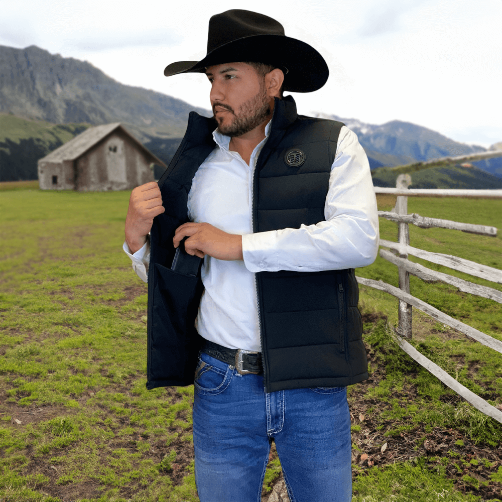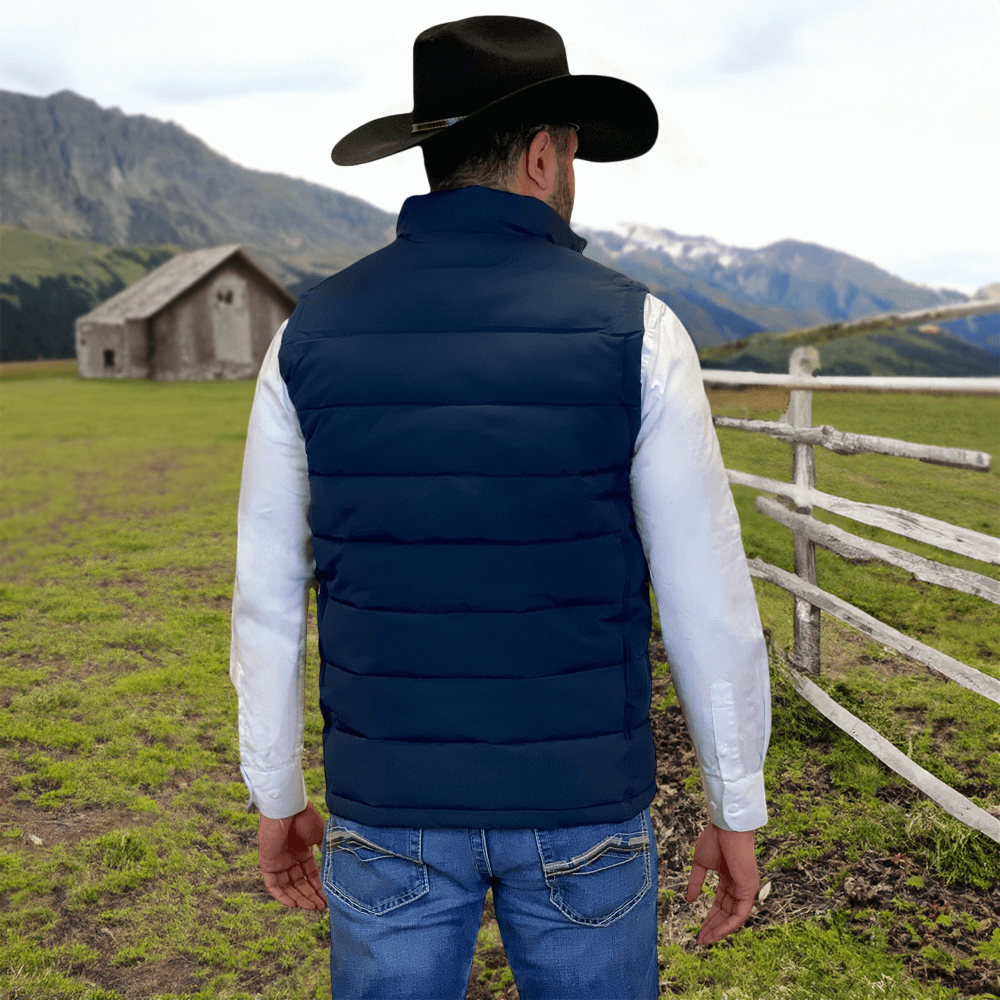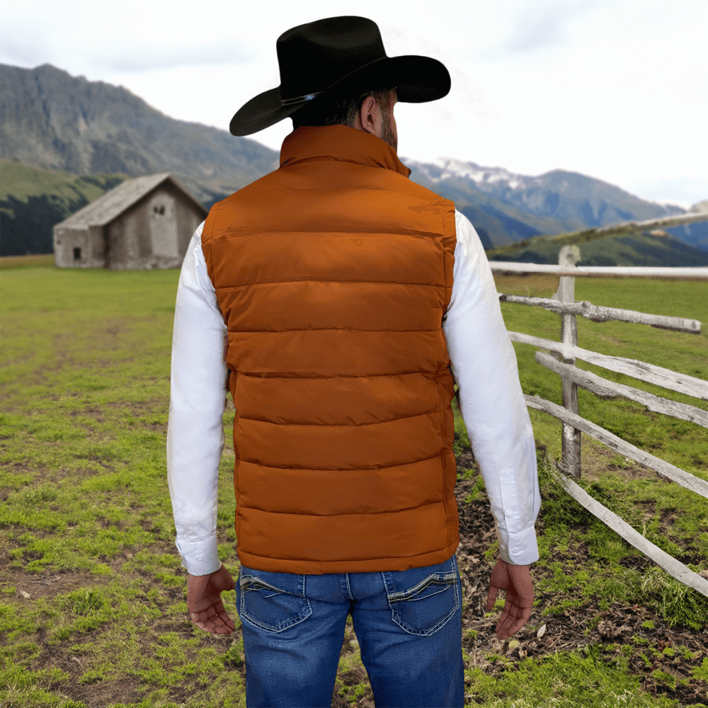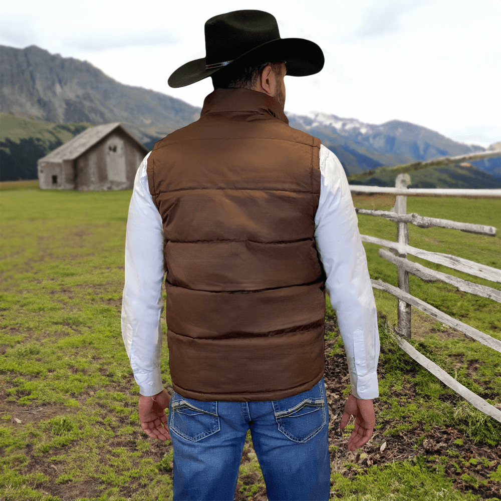 This sturdy midweight quilted Western puffer vest is just the right for most winter days. This vest is made of special blend of stretch polyester that's made to move with you and work as hard as you do on the ranch or at your work site.