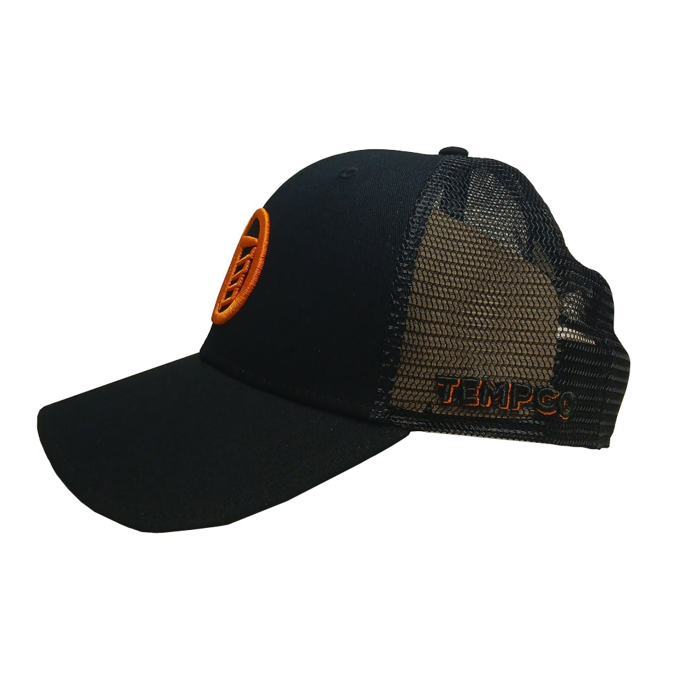 The cap is finished in a classic black color, highlighted by striking orange embroidered Tempco branding on the front for a high-contrast, premium look. Designed with heritage in mind, this style delivers a modern yet timeless appeal that pairs effortlessly with casual and outdoor wear.