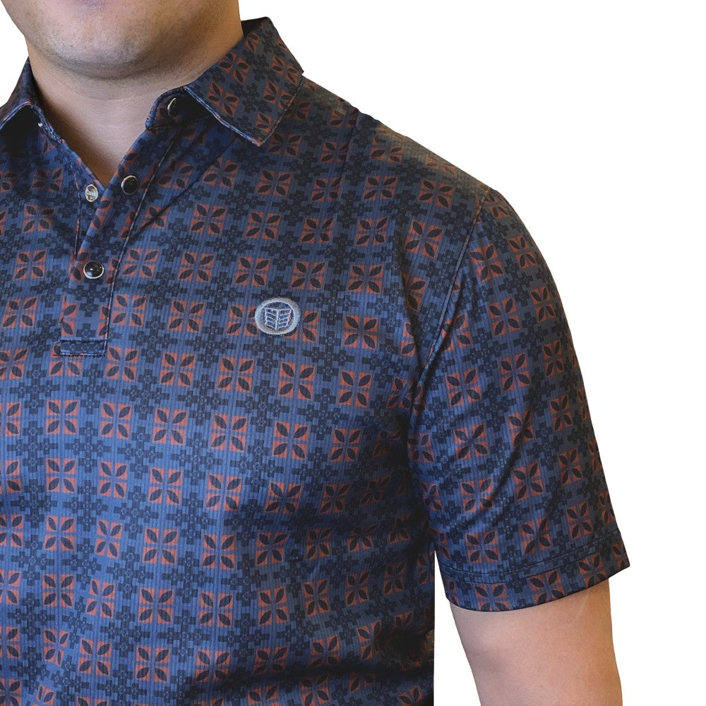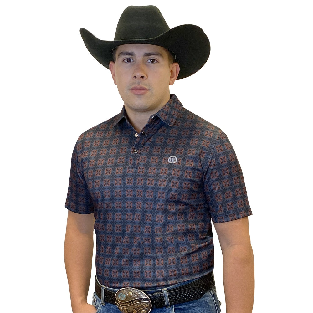 This mens short-sleeve polo delivers a sharp Western-inspired look with everyday comfort. Designed in a Black & Rust tone, it features a bold woven geometric pattern across the chest and sleeves. The classic three-button placket and structured collar provide a polished finish, while the soft, breathable fabric makes it ideal for all-day wear.