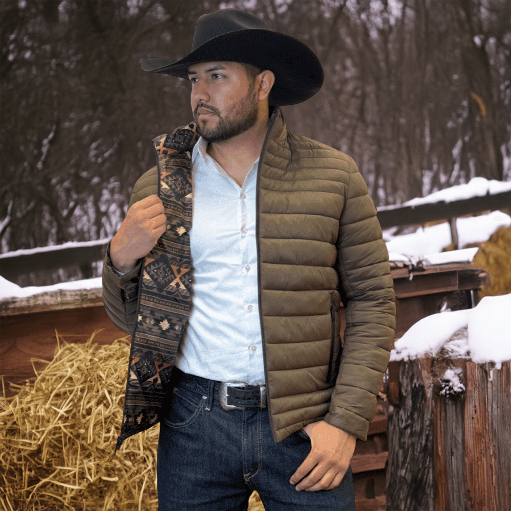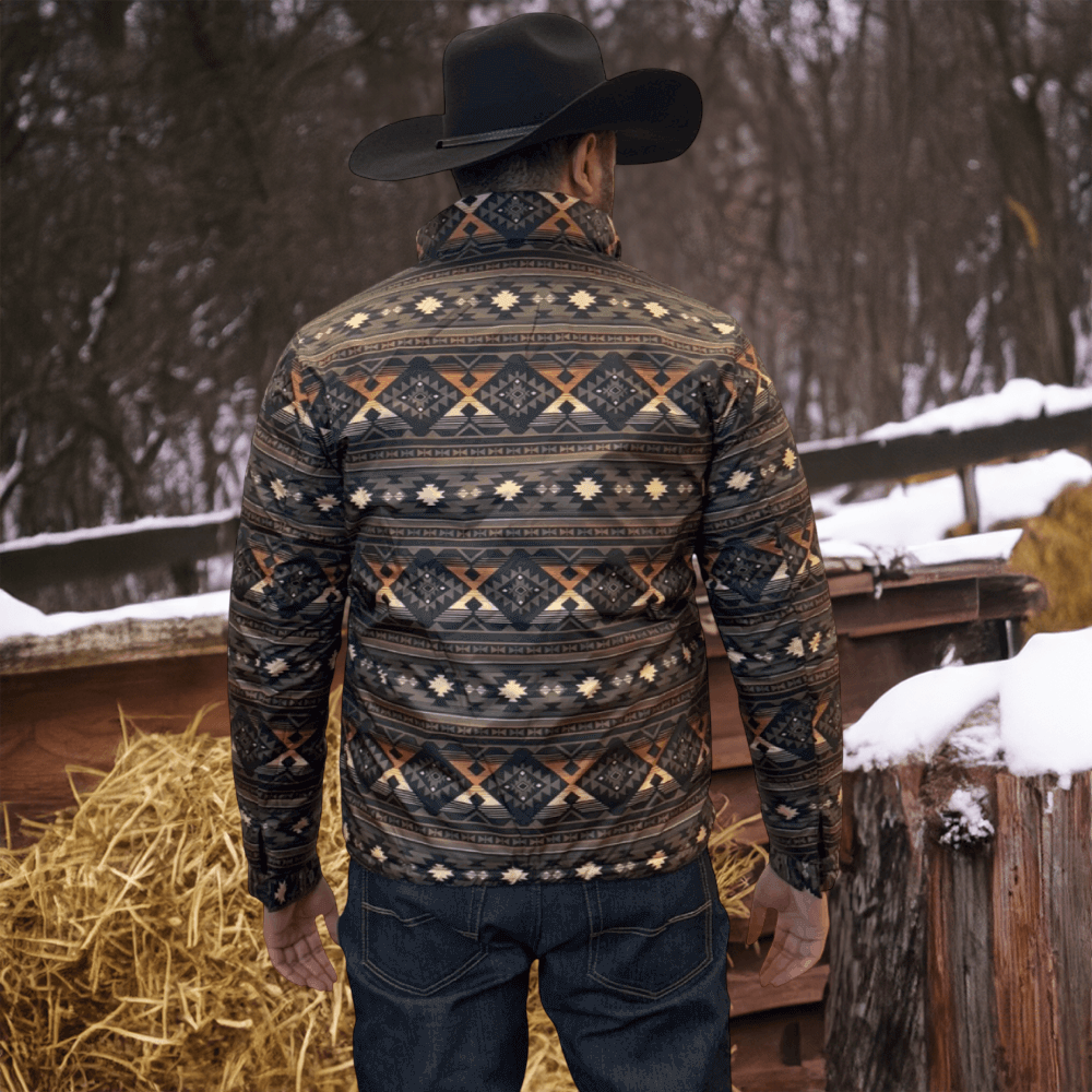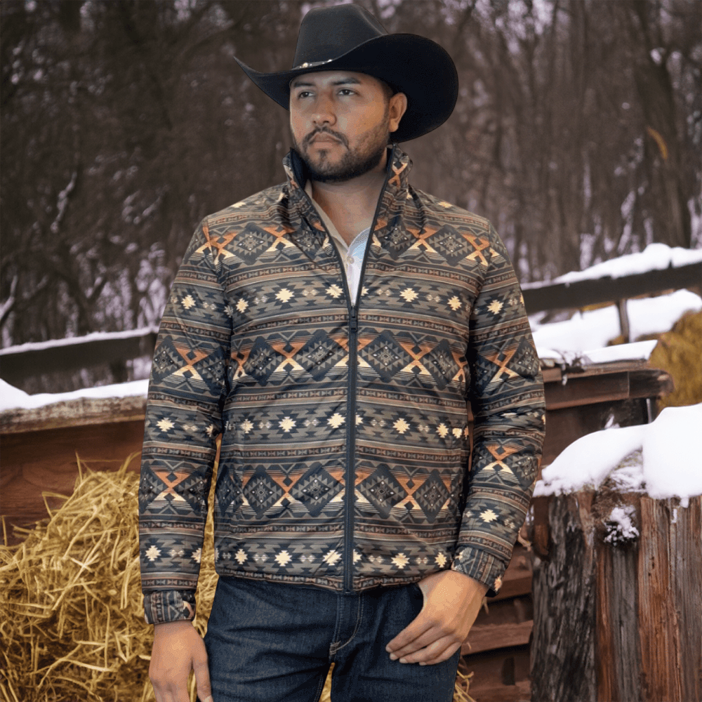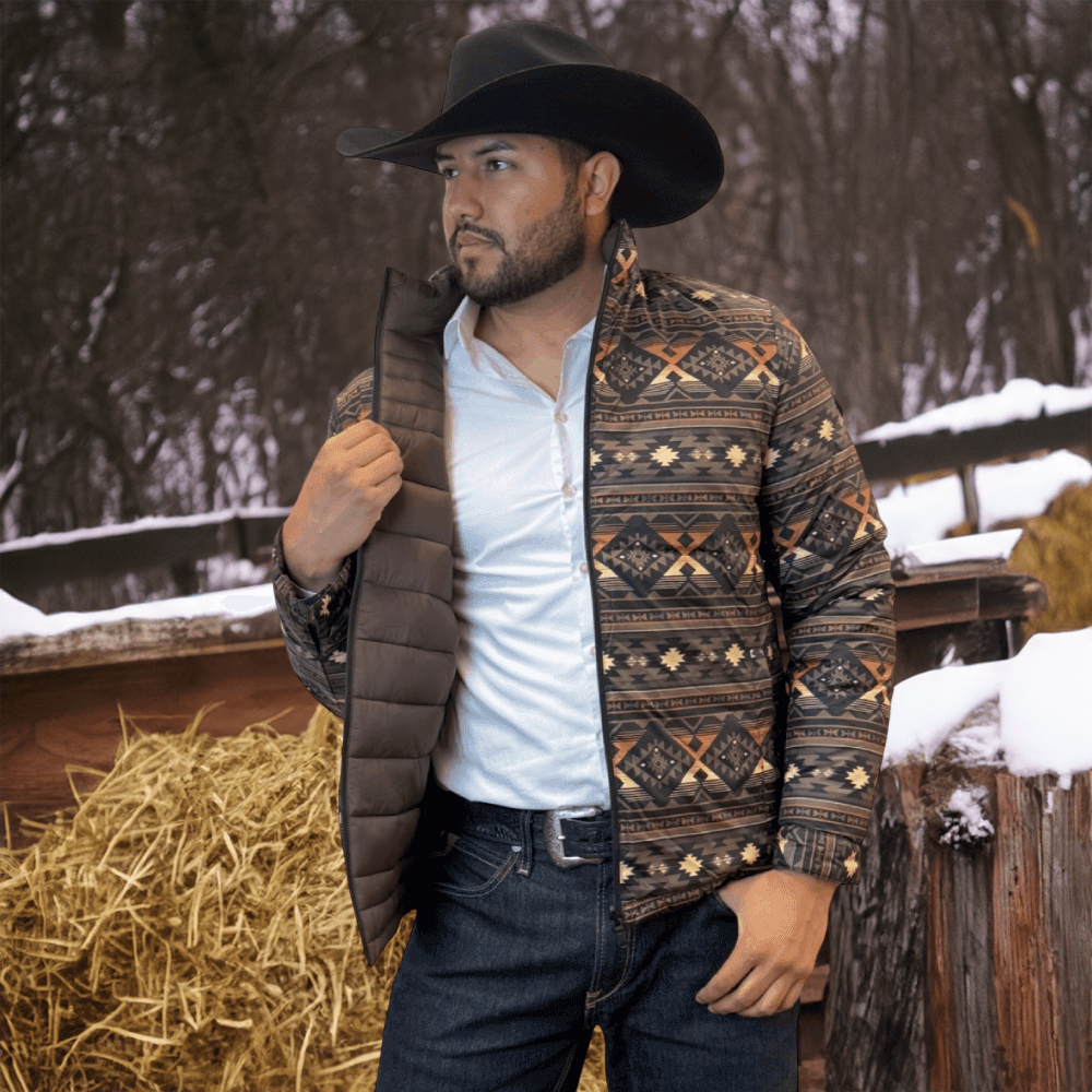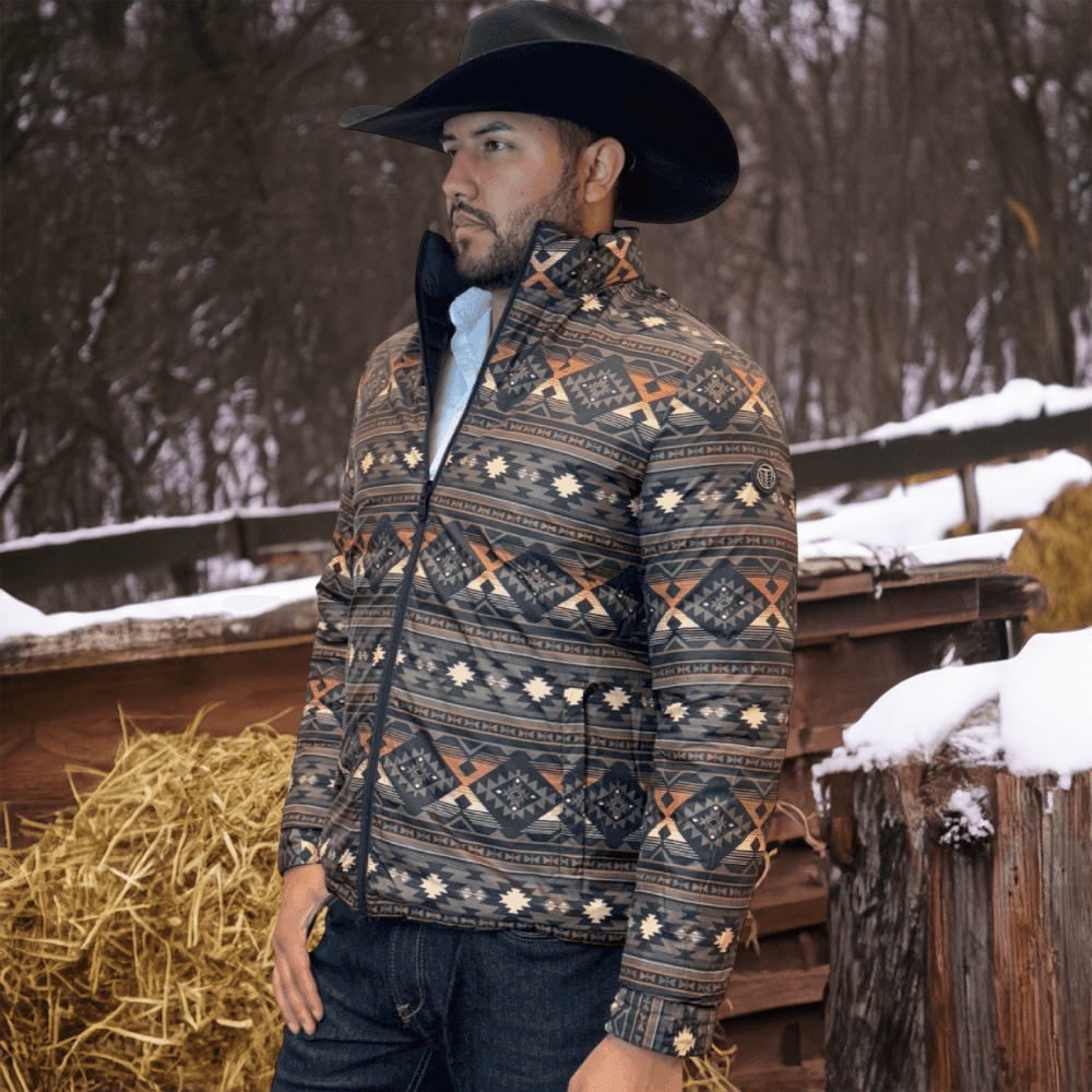 The soft feel of a lightweight Western puffer jacket with a more durable construction, plus it’s reversible! Two great styles in one with this stylish reversible jacket with printed Aztec pattern on the inside! Warm and comfy WarmTek Eco down filling. You won’t have to worry about harsh weather conditions like cold wind and rain, when you have this jacket on, it helps you keep the elements out