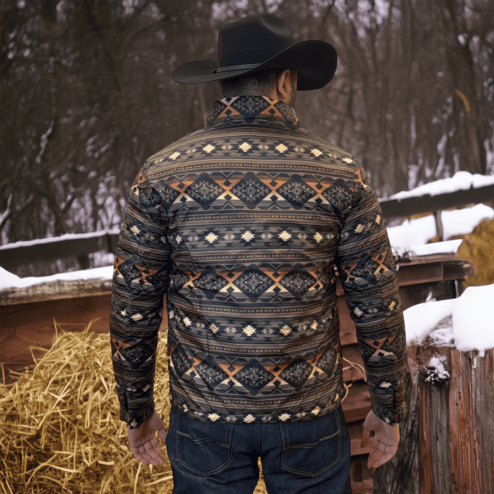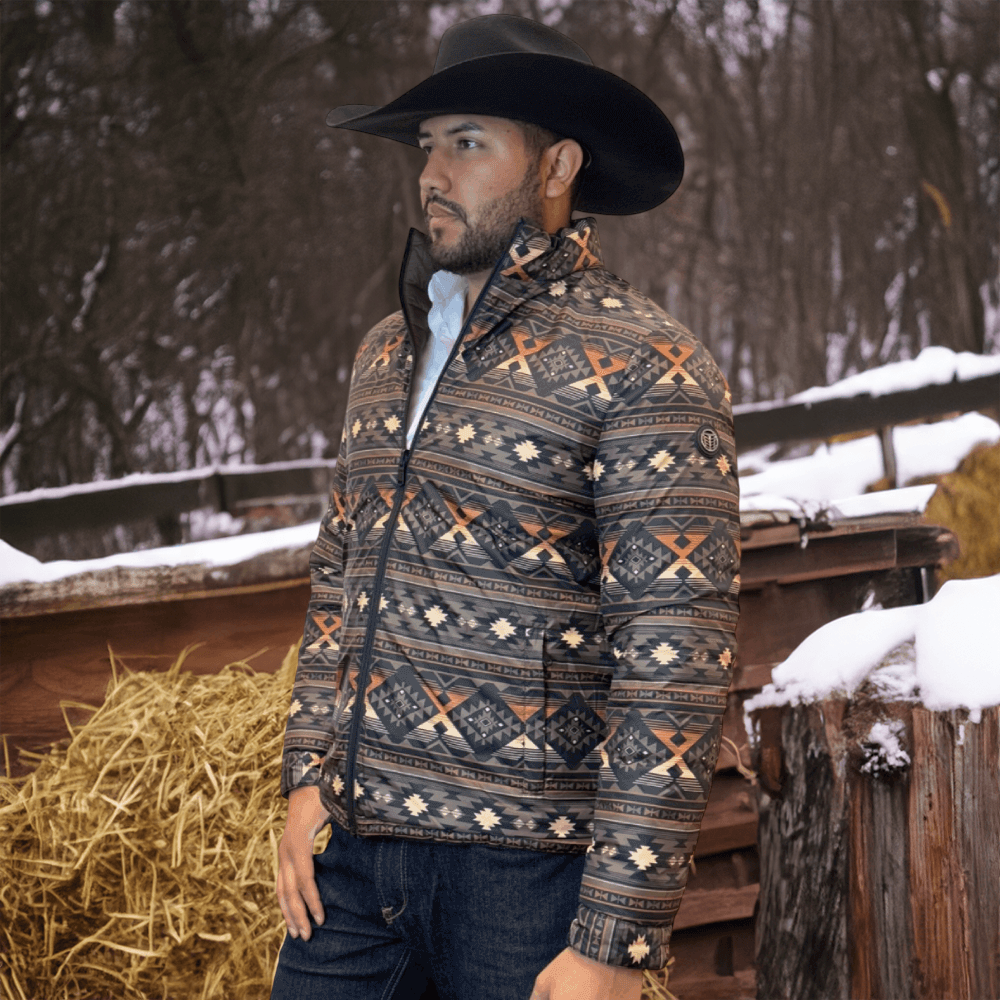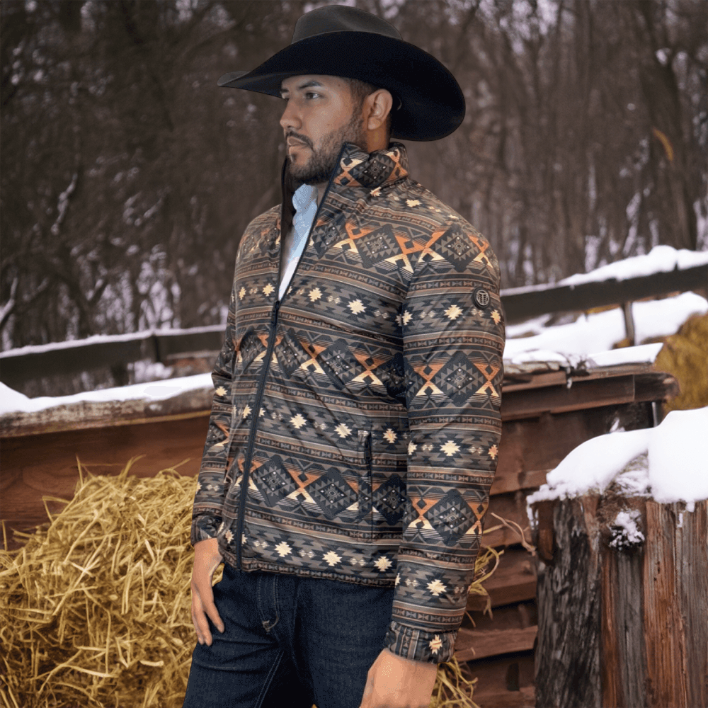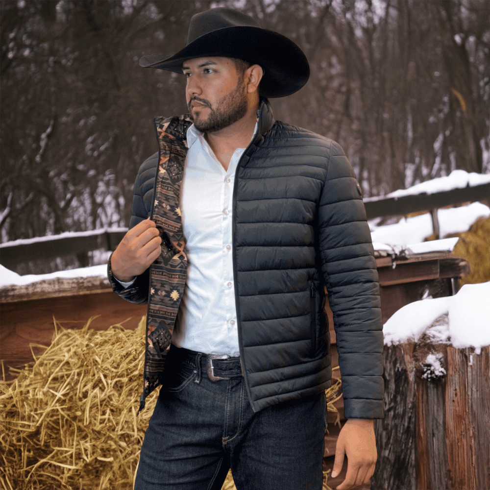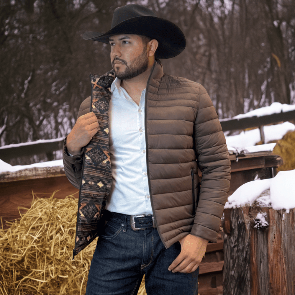 The soft feel of a lightweight Western puffer jacket with a more durable construction, plus it’s reversible! Two great styles in one with this stylish reversible jacket with printed Aztec pattern on the inside! Warm and comfy WarmTek Eco down filling. You won’t have to worry about harsh weather conditions like cold wind and rain, when you have this jacket on, it helps you keep the elements out