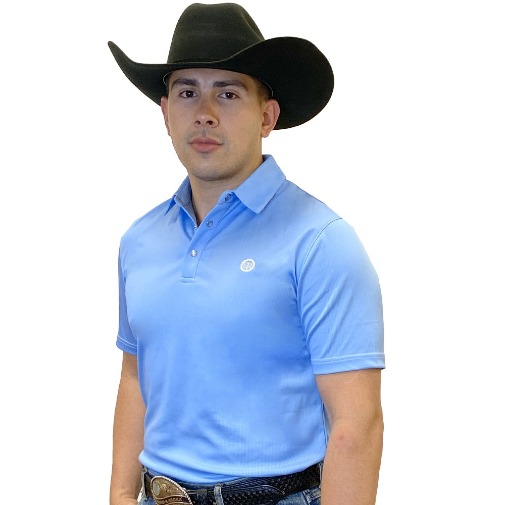 This classic Light Blue polo delivers a clean, polished look with a subtle Western edge. Designed for everyday wear, it offers comfortable short sleeves and a smooth solid finish that pairs easily with jeans or dress pants. A neatly embroidered logo on the left chest adds a refined touch without overpowering the minimalist design, making this polo a versatile choice for work, casual outings, or nights out.