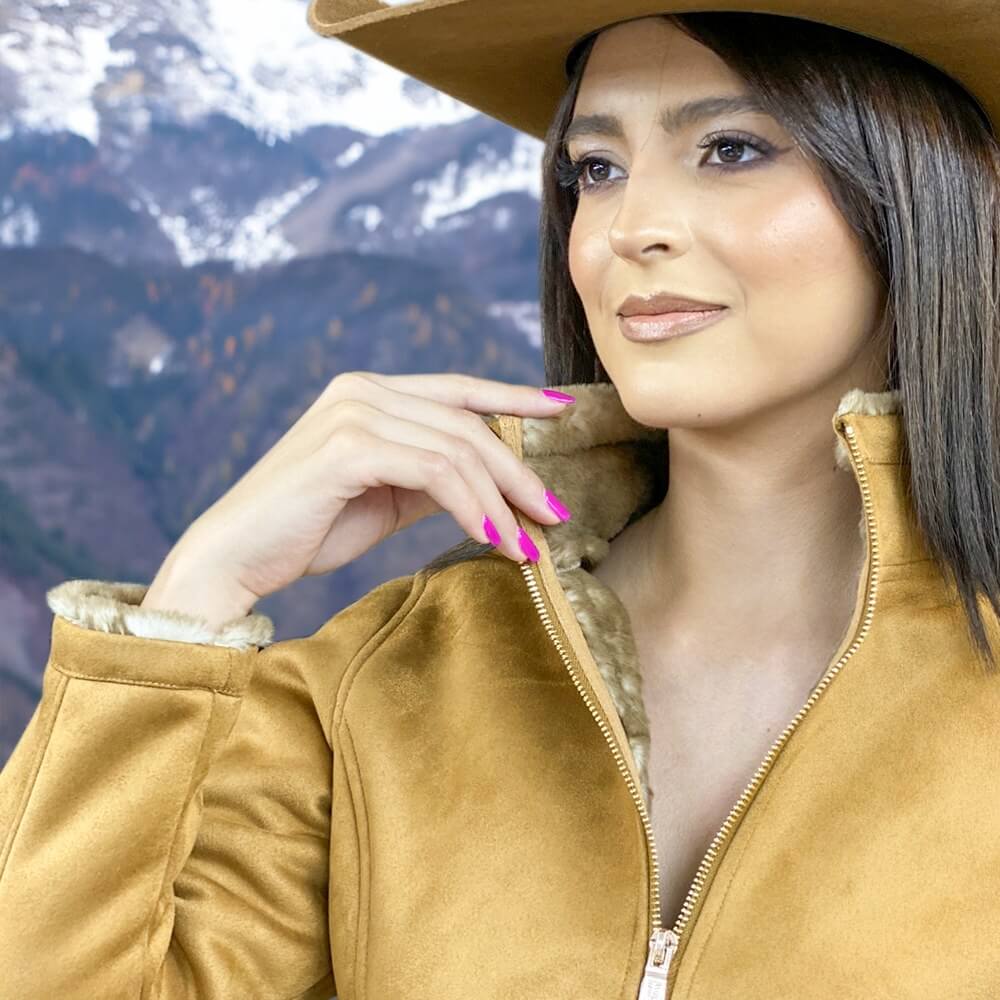 Beautiful Tempco Womens Olivia Jacket. This stylish womens faux suede jacket has a cozy yet stylish faux shearling lining so you'll stay warm in cold weather for a Nashville night out on the town. This jacket is versatile to wear with any outfit for your favorite winter look. Embellished with matching accents including zipper and logo on arm.